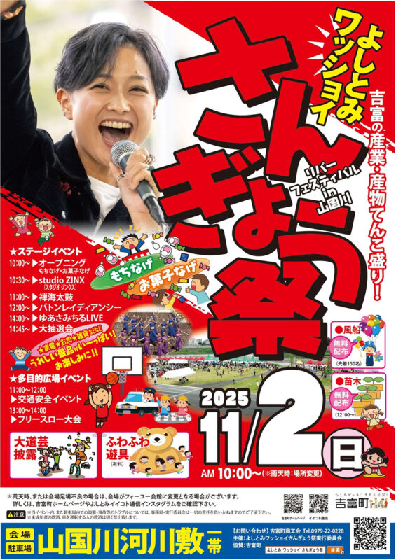 福岡県吉富町の魅力がギュッと詰まった、新しいお祭りがこの秋開催されます! おいしいキッチンカーや地域を盛り上げる多彩なステージイベント、豪華景品が当たる大抽選会など、見どころ・楽しみどころが盛りだくさん!